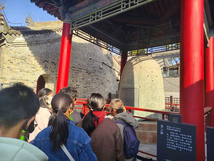 活动中,同学们循着历史脉络沉浸式探访碑林博物馆,从承载千年祭祀文化的孔庙区域起步,赏析“天下第一名钟” 景云钟,聆听其蕴含的历史典故与声学智慧;在碑林核心展区,近距离观摩《石台孝经》等经典碑刻,深入了解《关帝诗竹》《魁星点斗图》的艺术构思与文化寓意;在北区新馆,秦代《峄山刻石》、汉代《曹全碑》、唐代《皇甫诞碑》等珍贵碑刻,清晰勾勒出汉字从秦篆到隶书再到楷书的演变轨迹,让同学们直观感受汉字书法的流变与传承。此外,昭陵六骏石刻、《大秦景教流行中国碑》等文物,也让大家领略到多元文化交融的历史底蕴。